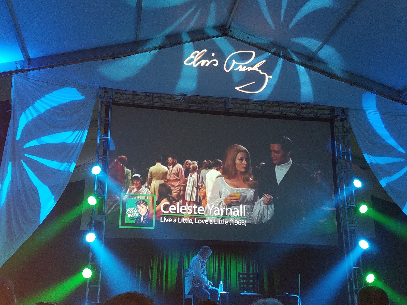 Tom Brown, formerly of Turner Classic Movies is a likable and engaging host to Elvis events during Elvis Week and also on You Tube, in the series, “Gates Of Graceland”. Brown is very popular with the fans and is perfect for the job. This years roster of guests for “Conversations On Elvis” included Elvis’s movie co-star Celeste Yarnall, she appeared with Elvis in the 1968 M-G-M film, “Live A Little, Love A Little”. Yarnall told Elvis that “A Little Less Conversation” (the song he sang to her in the film) would be a number one song. She was right, but the song wouldn’t hit number one until it was released as a single in 2001.